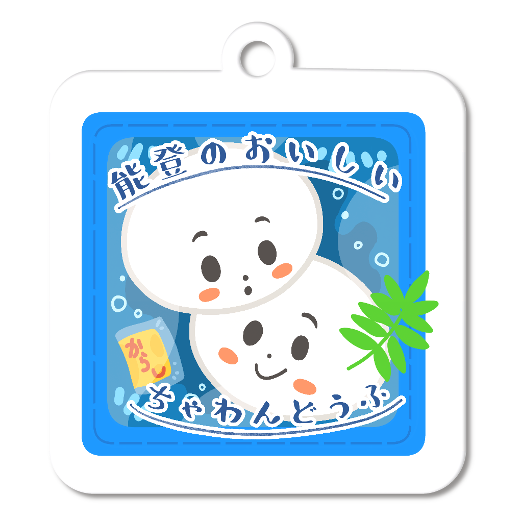 能登の茶わん豆腐(アクリルキーホルダー・四角型6cm/クリア)