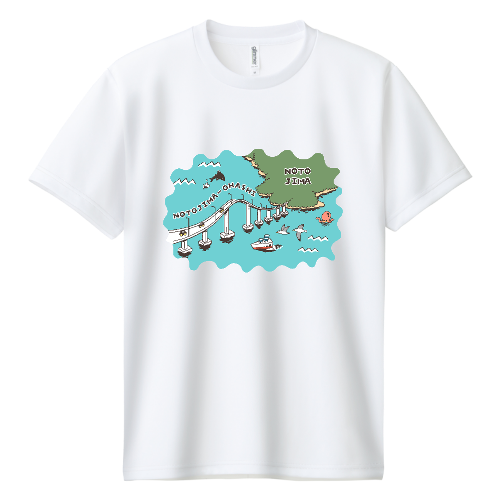 能登島大橋(ドライTシャツ/正面デザイン/白色)