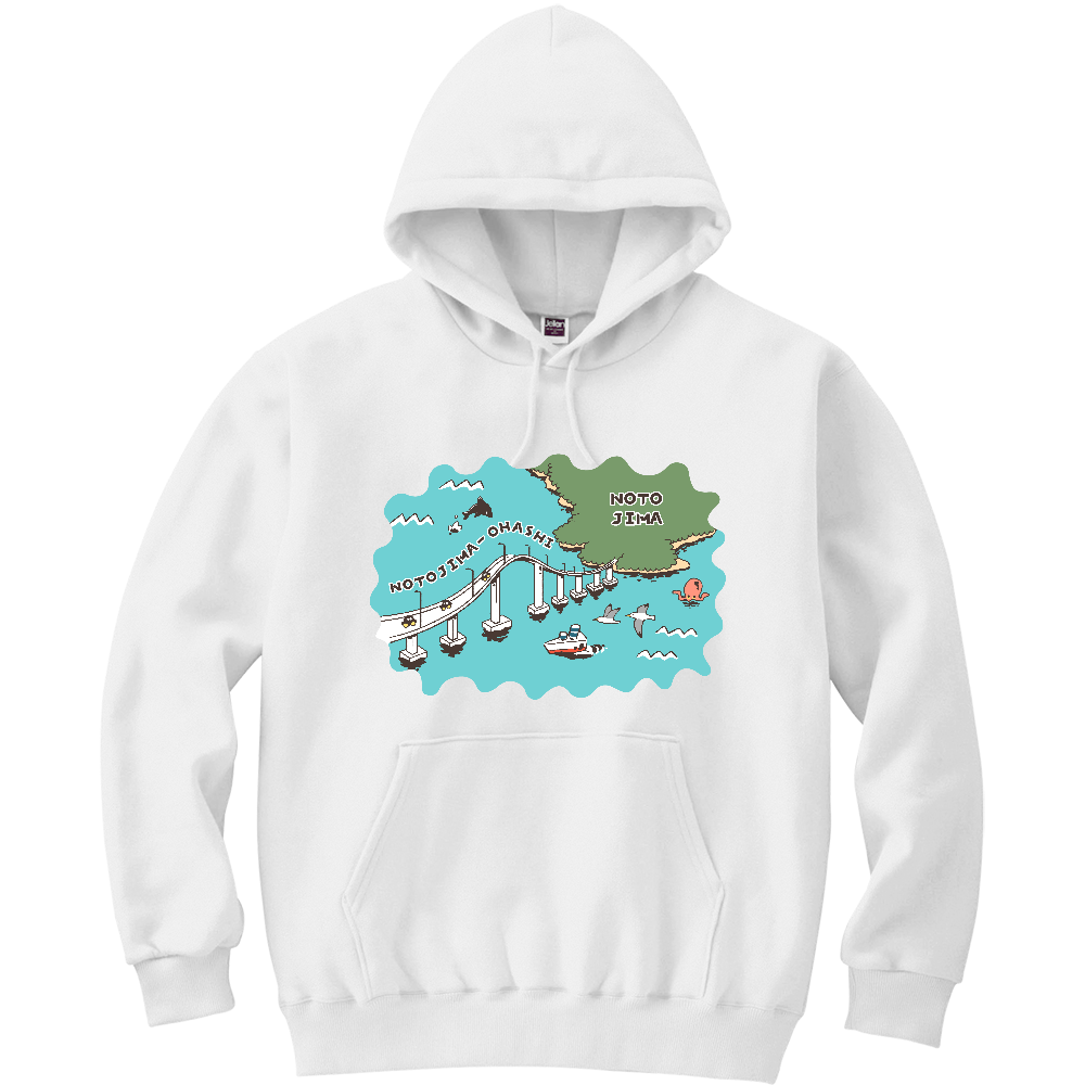 能登島大橋(軽量プルパーカー/正面デザイン/白色)