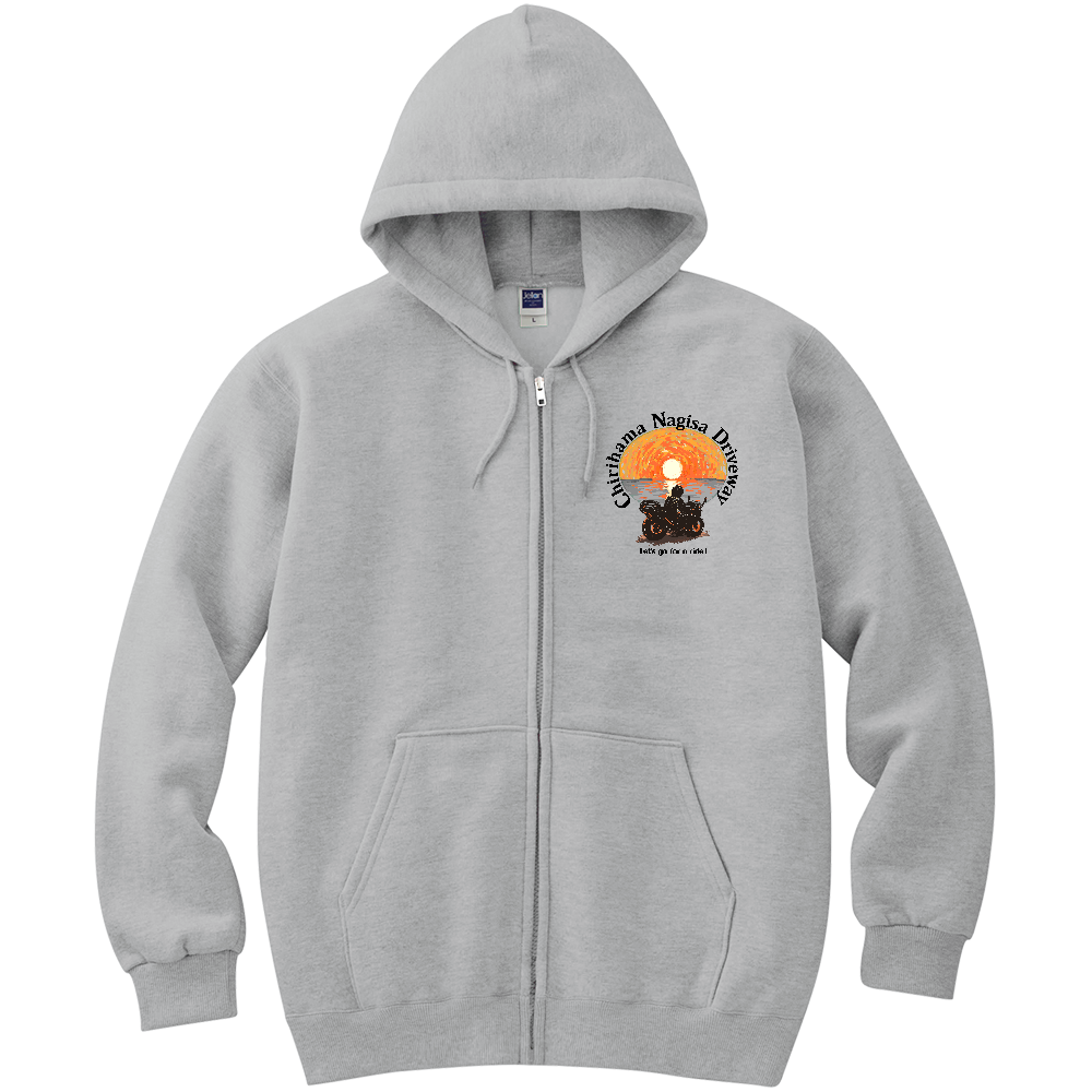千里浜Ride・フチあり(定番ジップパーカー/正面デザイン/白色以外)